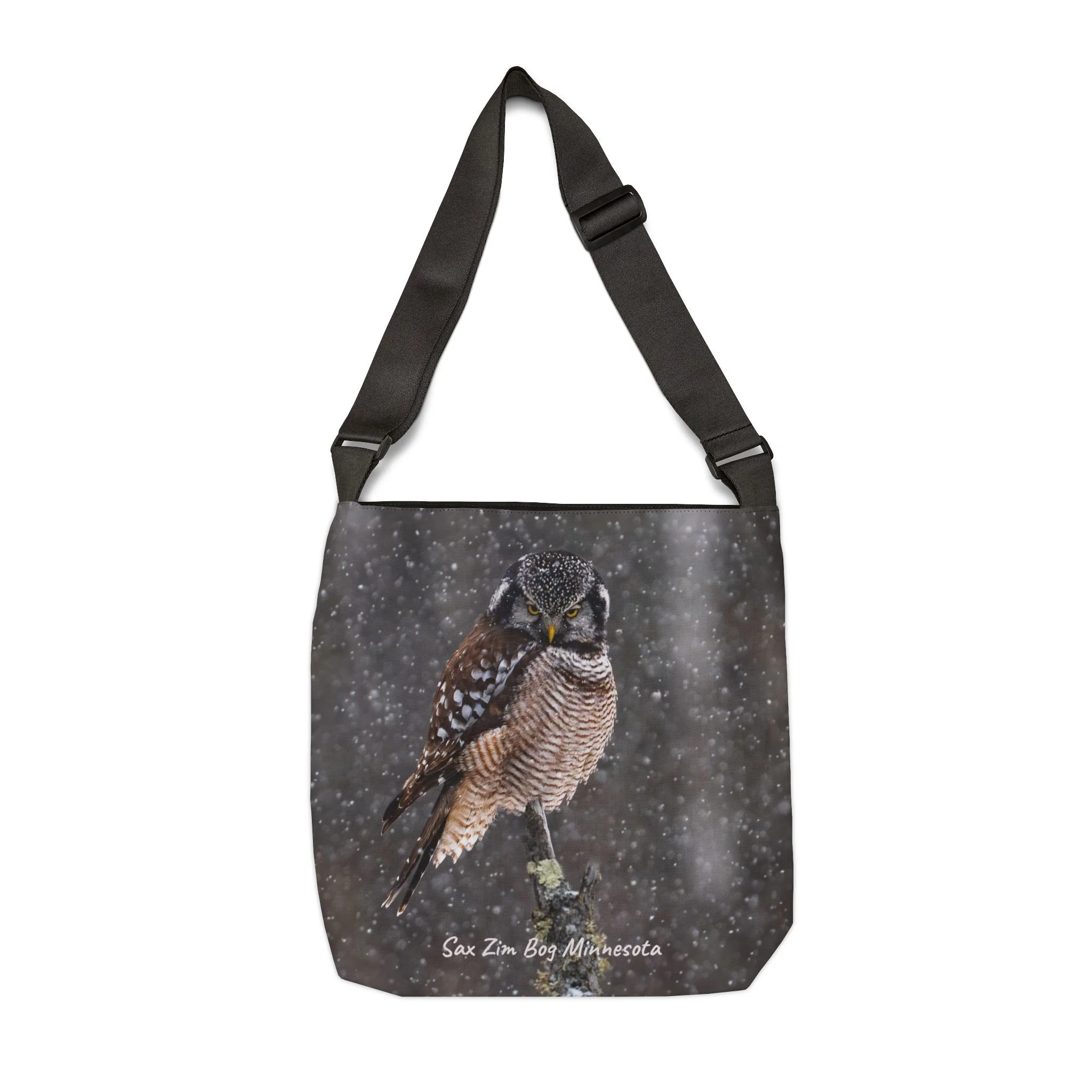 A roomy, adjustable tote designed for wildlife lovers who carry stories of the forest with them. The polyester fabric keeps the forest-print images rich and crisp, so the curious Pine Marten and Northern Hawk Owl look stunning every time out. The strap adjusts to sling the bag crossbody for hands-free wanderings, while the black-lined interior and inner pocket keep snacks, phone, or field notes tidy. Assembled in the USA from globally sourced parts — this tote feels lived-in from the first walk through town or the first stop at a nature trail.